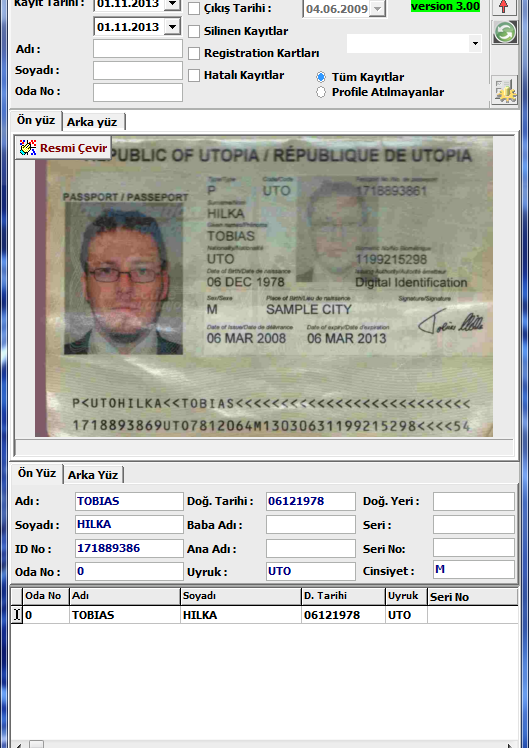 Otel programına pasaport ve kimlik datalarını otomatik olarak aktarır